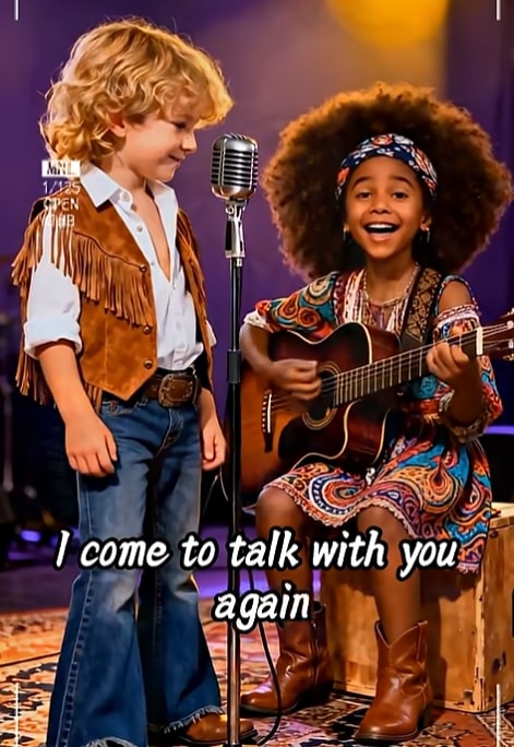 One rainy afternoon, fate stepped in. During a school talent show audition, Ethan stood nervously clutching his father’s worn microphone. Maya sat quietly in the back, holding her guitar close like it was the last piece of home she had. When the teacher asked for volunteers, no one moved. Maya hesitated, her hands trembling. Ethan noticed — and with gentle courage, walked over and whispered, “Want to sing together?”